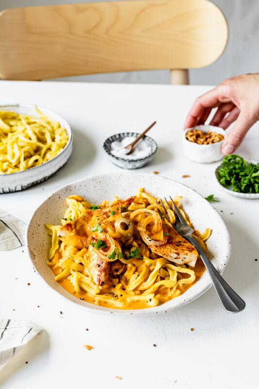 Auch ein absoluter Liebling zu Spätzle ist ein saftiger Rinderbraten mit Gemüsesoße und Rotkohl. Unglaublich cremig sind dafür Käsespätzle, die mit einer Mischung aus Bergkäse, Emmentaler und Gouda zubereitet werden. Wer kann da schon widerstehen? Himmlisch lecker machen sich die Spätzle auch gemeinsam mit Zwiebel-Cheddar-Hähnchen. Die würzige Soße und die selbst gemachten Spätzle schmecken einfach perfekt zusammen.