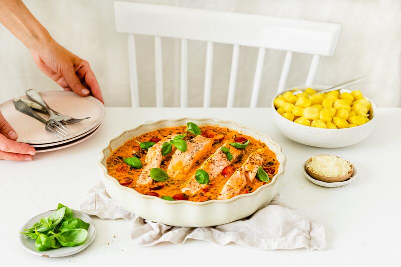 5. Cremig, würzig, lecker: Lachs in Tomatensoße mit Gnocchi! 😍