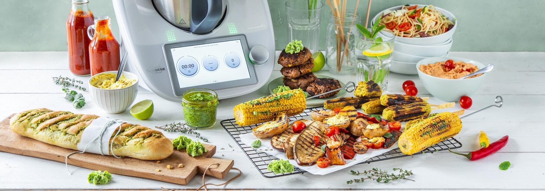Die ersten warmen Sonnenstrahlen sind unser Zeichen: Ab nach draußen, Grill einheizen und gemeinsam mit Familie und Freund:innen richtig gut essen. Hier findest du alles, was du für eine entspannte, aber leckere Grillsaison brauchst. Salate, Soßen, Marinaden, Brote … Kurz: Die besten Rezepte für den Thermomix®, die du schnell und einfach vorbereiten und auf jedes Grillbuffet stellen kannst.