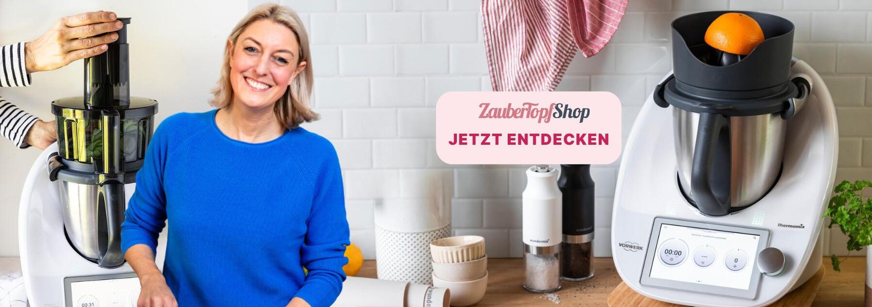 Im ZauberTopf Shop findest du nicht nur die Magazine und Bücher mit unseren Rezepten und Tipps für das Leben mit deinem Thermomix®. Du bekommst dort auch Zubehör, dass deinen Zaubertopf auf das nächste Level hebt, den Alltag erleichtert und tolle neue Funktionen ermöglicht. Entdecke hier die besten Produkte und erfahre immer als erste:r, wenn es tolle Schnäppchen gibt. Als Mitglied im ZauberTopf Club bekommst du dauerhaft 15 % Rabatt.