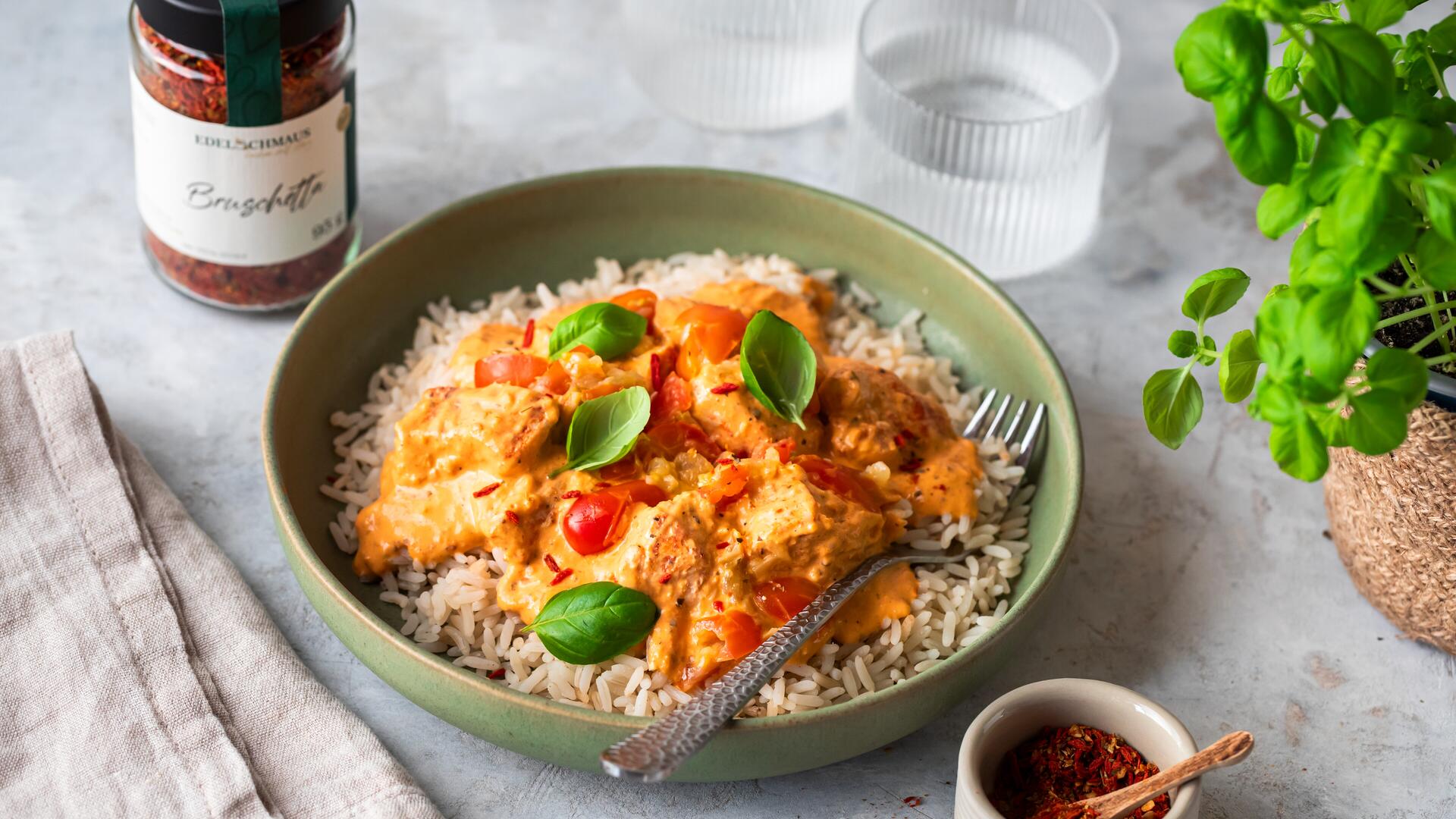 Thermomix® Expertin Dési zeigt dir, wie du ein saftiges Bruschetta-Hähnchen mit Reis und cremiger Schmandsoße ganz entspannt im Thermomix® zauberst. 🤩 Ein echtes All-in-One-Gericht: alles in einem, kaum Abwasch, maximaler Genuss. Das Hähnchen gart im Varoma® herrlich zart und trifft auf eine sämige Soße, die einfach passt. Perfekt für Tage, an denen’s schnell gehen soll – aber bitte richtig gut. ✨