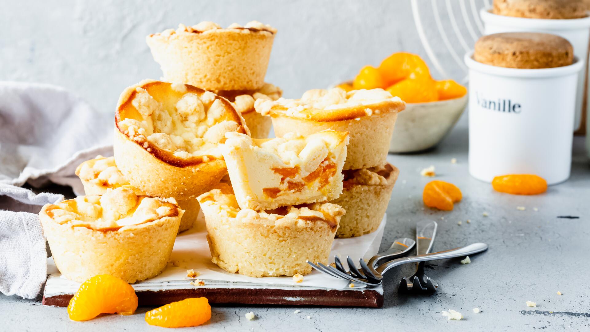Dein Muffinblech verstaubt im Küchenschrank? Das darf nicht sein! Dieses Rezept für Käsekuchenmuffins mit dem Thermomix® animiert dich, das Blech hervorzukramen. Ein einfacher Mürbeteig, eine cremige Käsekuchenfüllung (optional mit Mandarinen) und ultraknusprige Streusel ergeben die allerbesten Käsekuchenmuffins. Lass dir von Dési zeigen, wie du Step by Step Muffins à la Käsekuchen backst. Die Backarbeit lohnt sich, versprochen!