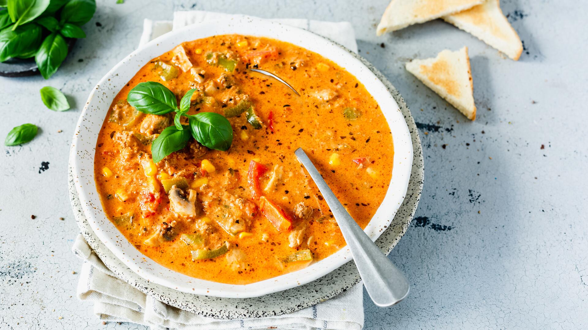 Sie zählt zu den Geheimtipps der ZauberTopf-Community: Pizzasuppe mit Hackfleisch und Schmelzkäse. Dieses Video widmet Dési der einfachen Zubereitung der schnellen Suppe aus dem Thermomix®. In nur 20 Minuten ist die Pizzasuppe fertig! Und ganz nebenbei ist diese würzig-cremige Suppe auch noch low carb.