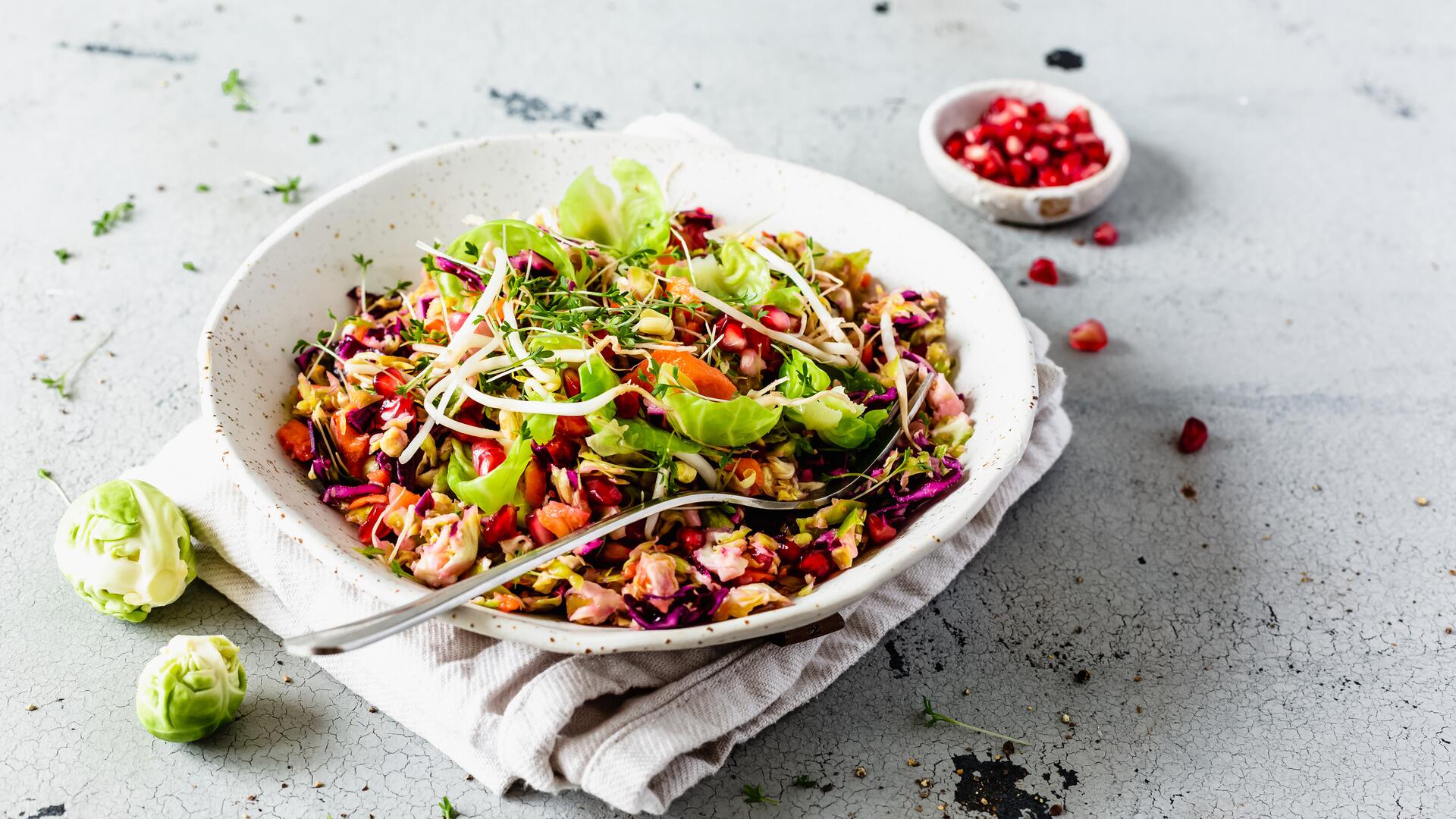 Gesunde Zutaten, eine kurze Zubereitungszeit und ein Ergebnis, das sich schmecken lassen kann. In diesem Video zeigt Dési dir, wie du in kürzester Zeit den leckersten Rosenkohlsalat mit Rokohl und Karotten zauberst. Und ja, dieser Wintersalat aus dem Thermomix® hilft dir dabei, fit durch die kalte Jahreszeit zu kommen.