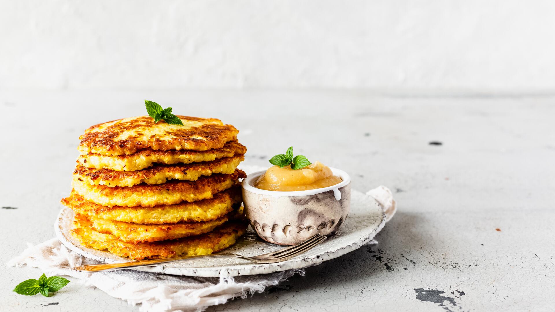 Versetzt dich der Duft frisch gebackener Kartoffelpuffer auch zurück in deine Kindertage? Wir lieben die kleinen Bratlinge aus Kartoffeln - innen saftig, außen herrlich kross! Deshalb zaubert Dési in der Versuchsküche eine riesige Portion Kartoffelpuffer im Thermomix®! Und du bist mit diesem Video dabei. Außerdem bringt Dési ein paar Tipps für dich mit, damit deine Kartoffelpuffer die krossesten und besten Puffer werden.