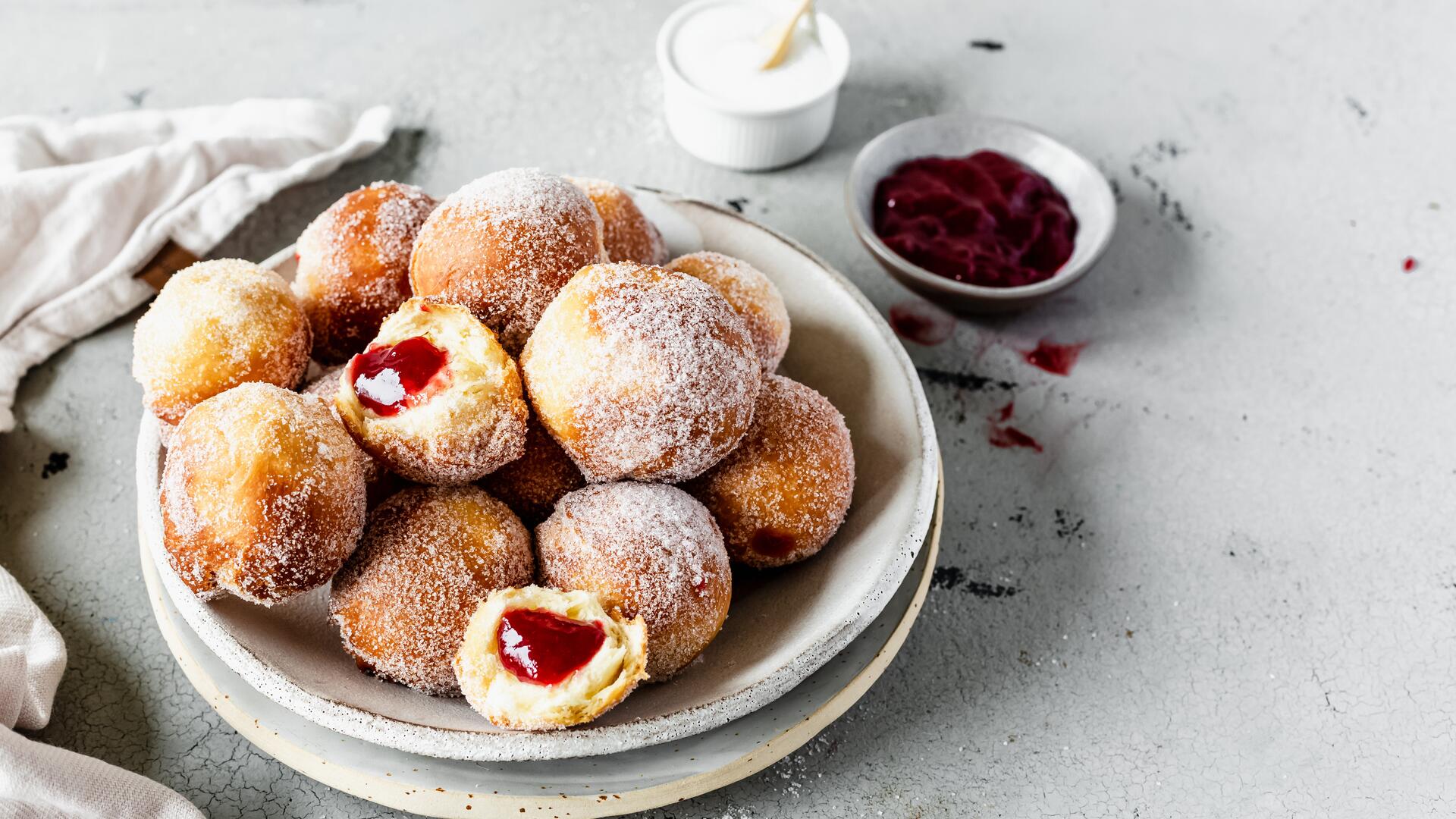 Viele Menschen bestellen frische Berliner bereits Wochen vor Silvester, um sie in der Nacht zum 1. Januar in den Mund zu schieben. Wir essen das süße Gebäck jedoch nicht nur zum Jahreswechsel. Bei uns kommen Mini-Berliner wie diese das ganze Jahr über auf die Kaffeetafel. Denn egal, ob Frühling, Sommer, Herbst oder Winter, die gefüllten Berliner mit dem Thermomix® sind einfach gebacken und schmecken immer. Und das sieht Dési genauso!